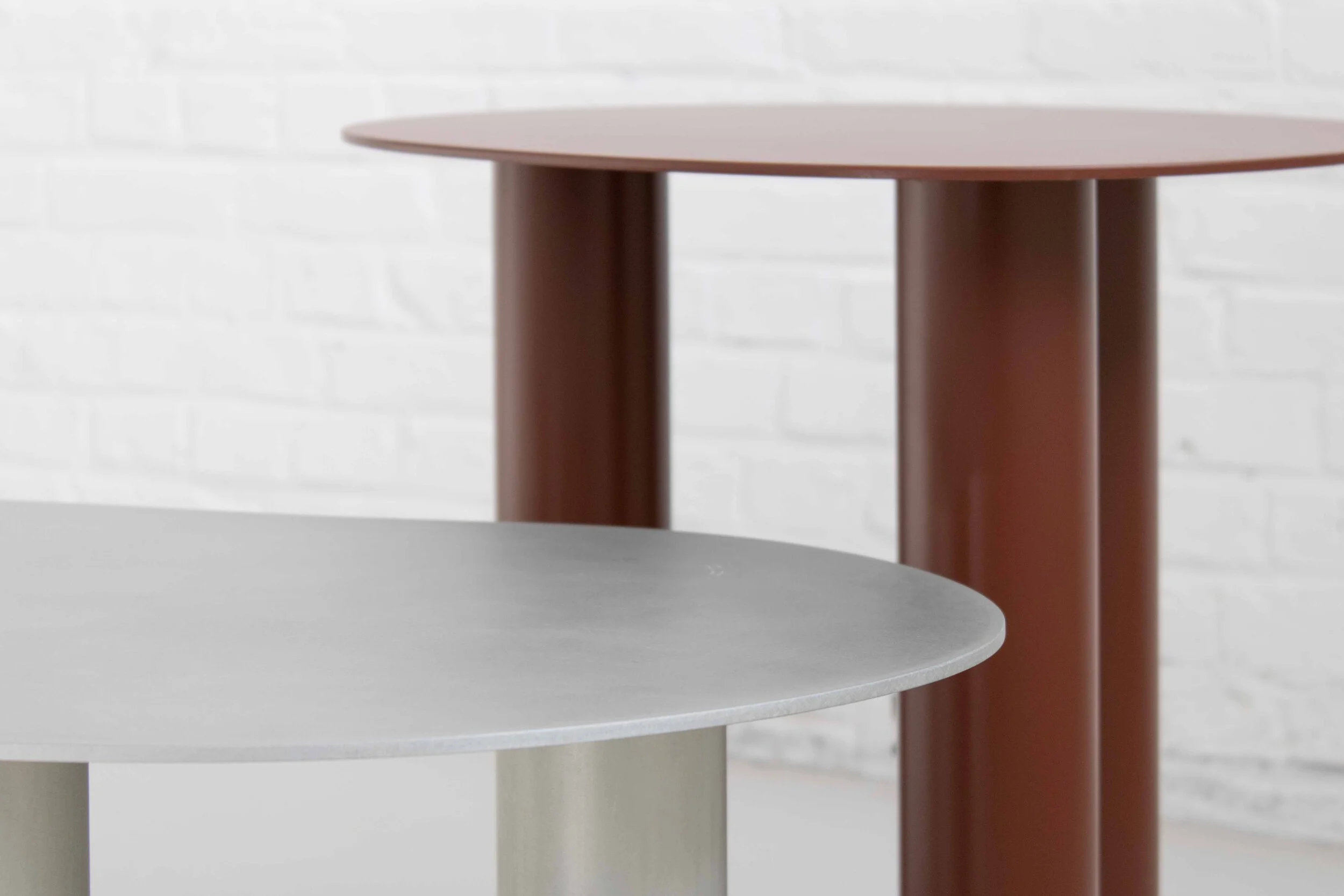The Spline side tables are composed of a thin, elegant tabletop, counterbalanced by three chunky legs. Their off-round shape is organic, yet defined. The tables are made of aluminium, the unique properties of this material - strong, yet lightweight - are utilized to their full potential.