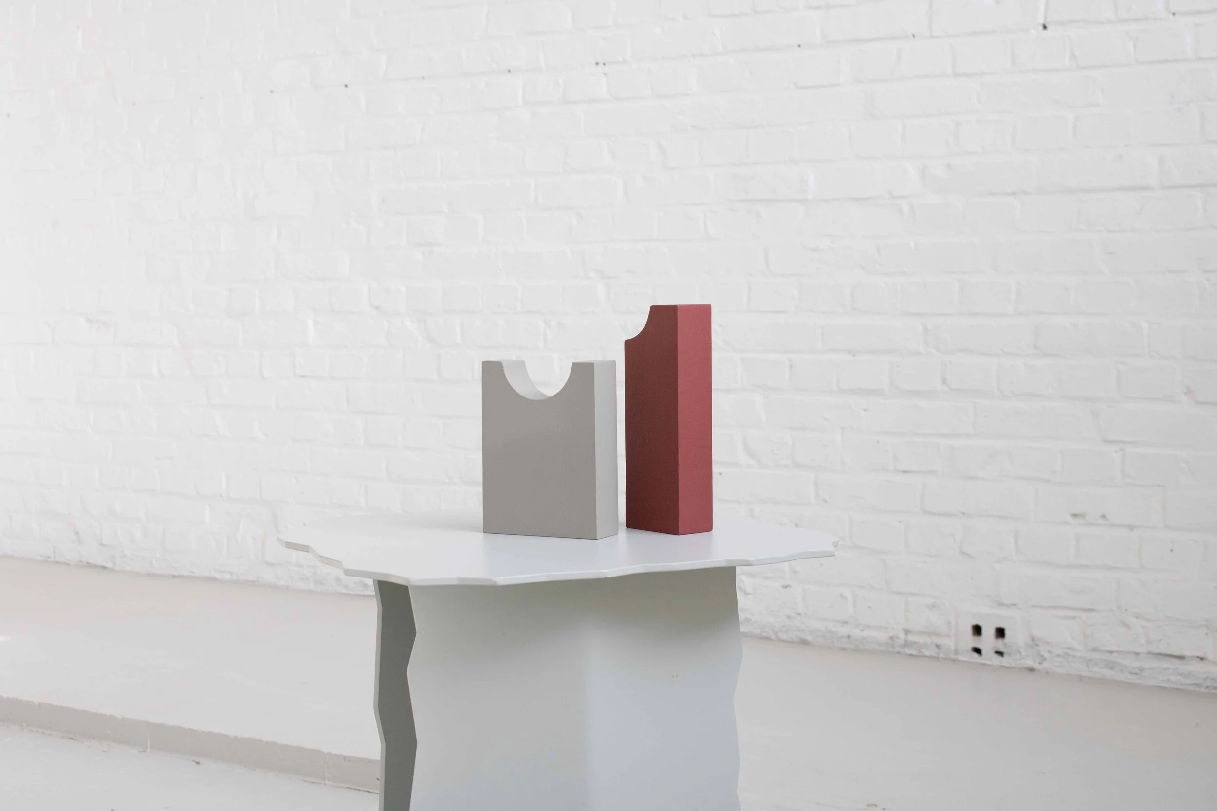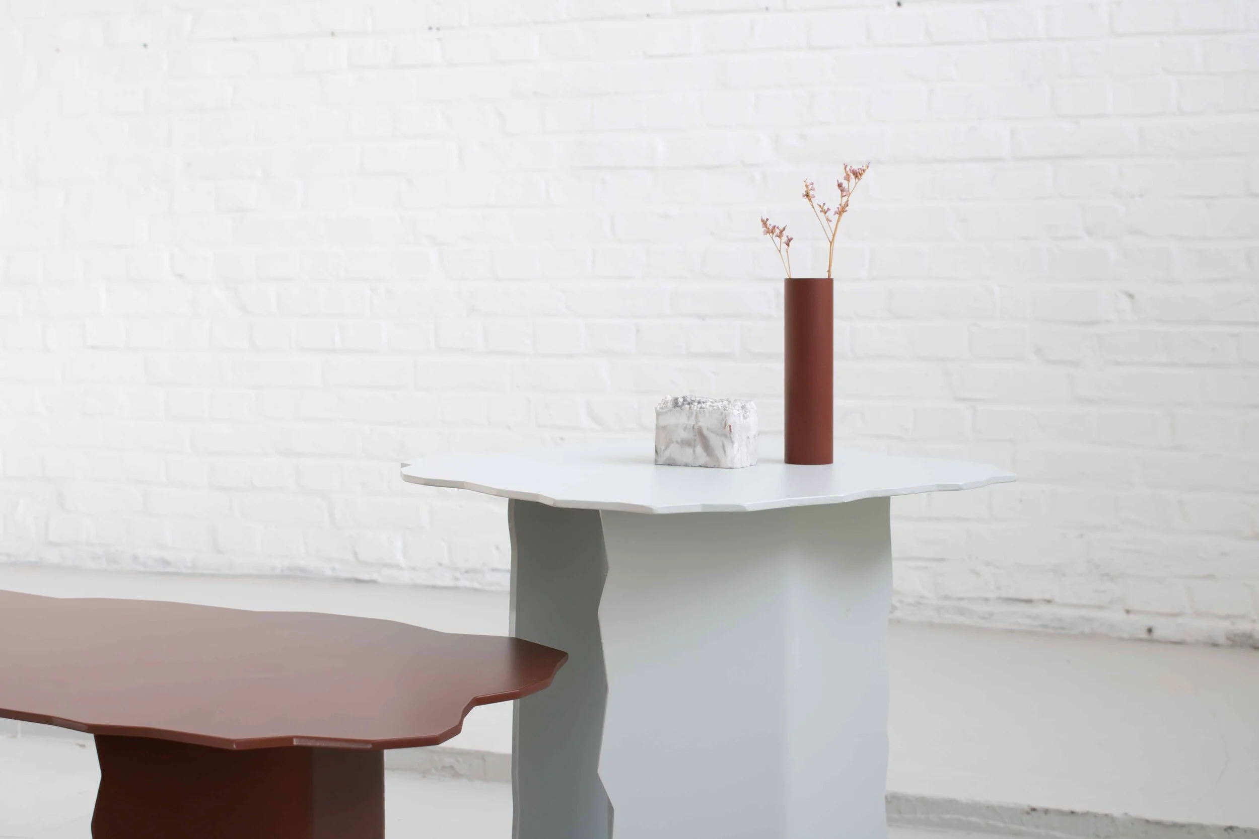 The tables come in two shape variants, a high and low variant. The two variants can be used separately or, when combined, they form a balanced composition.