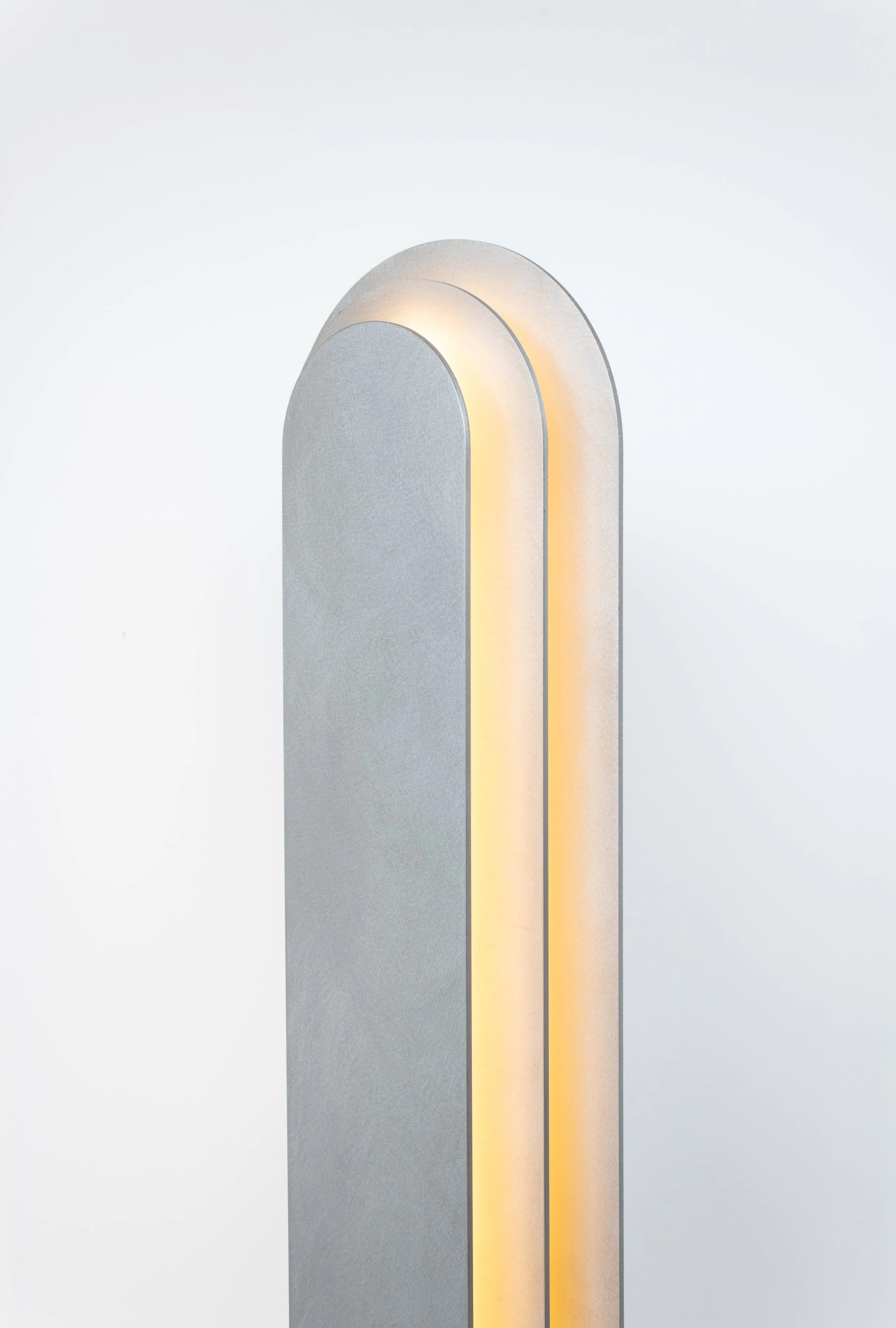 Both the form and material of the Spire lamp are inspired by the iconic Art Deco landmark: the Chrysler Building in New York. The design of its distinctive spire, characterized by tiered arches, has been distilled to its essence and reinterpreted as a minimalist volume. The triangular elements on the Chrysler Building’s spire, which symbolize rays of sunlight, are replaced in the Spire lamp with actual light. The indirect illumination reflecting off the aluminum panels enhances the texture of the material, creating a refined interplay of light and surface.